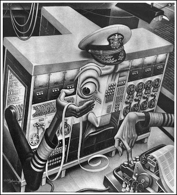Ilustrações que misturam máquinas e equipamentos com